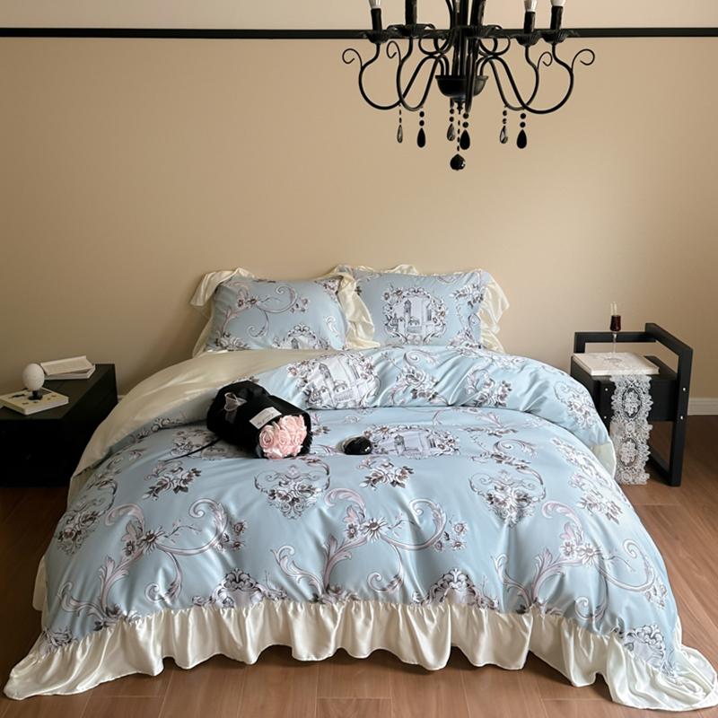 Комплект постельного белья, пододеяльник, комплект французской принцессы 2024 года, новый комплект из четырех предметов с цифровой печатью класса А Skinner Cotton Matte Single150x200 3pcs