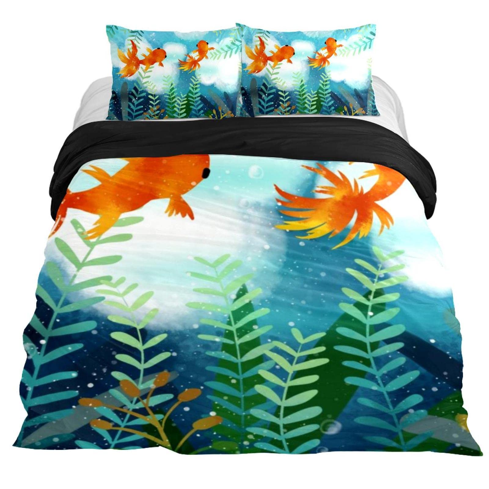 Комплект постельного белья с изображением золотой рыбки для девочек и мальчиков, детский пододеяльник с изображением морской волны, декоративный пододеяльник в японском стиле с изображением морской волны и серфинга US Queen(228x228cm)
