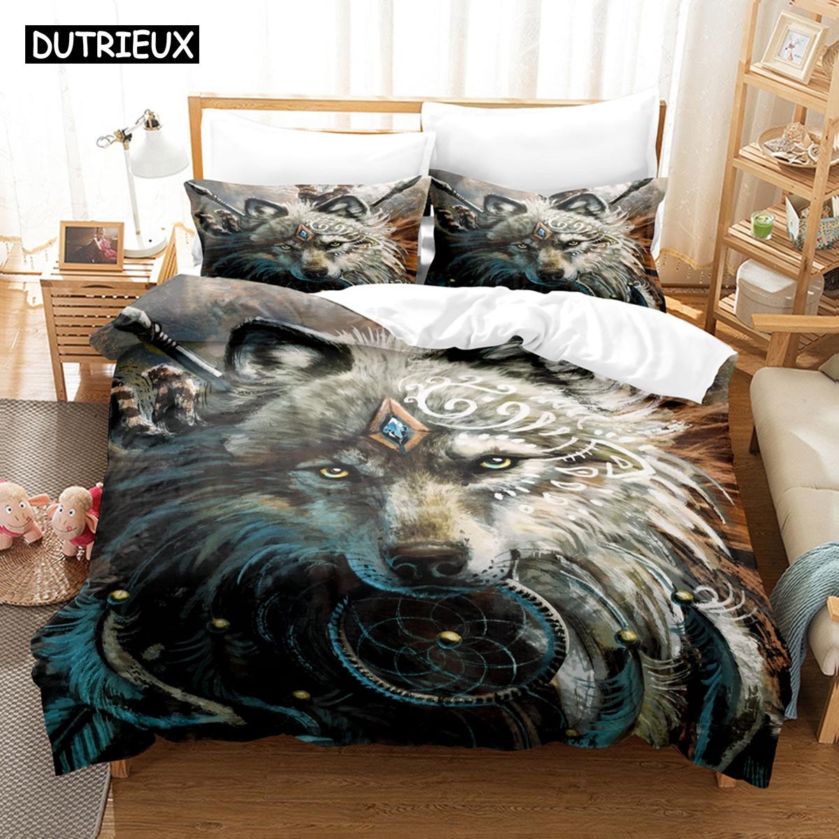 Комплект постельного белья с милым изображением волка и животных, 3D-печать, для детей и взрослых, роскошный подарок, пододеяльник, удобный домашний текстиль, односпальная кровать, двуспальная кровать размера «king-size» AU Double(180x210cm)