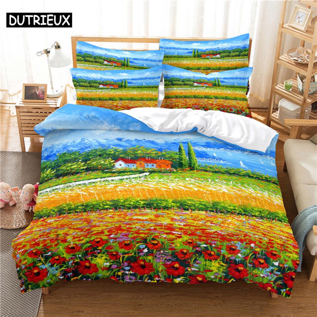 Комплект постельного белья с пейзажной живописью, пододеяльник, 3d постельное белье, цифровая печать, постельное белье, королевский размер, комплект постельного белья, модный дизайн EU single(135x200cm)&set