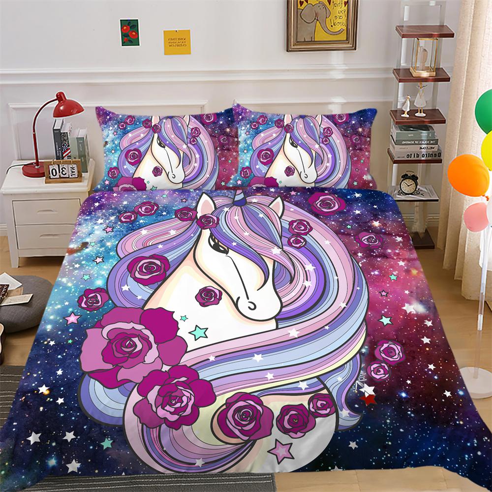 Комплект постельного белья с принтом единорога, домашнее постельное белье, двойной размер, покрывала из микрофибры, высокое качество, пододеяльник AU Single 140x210cm