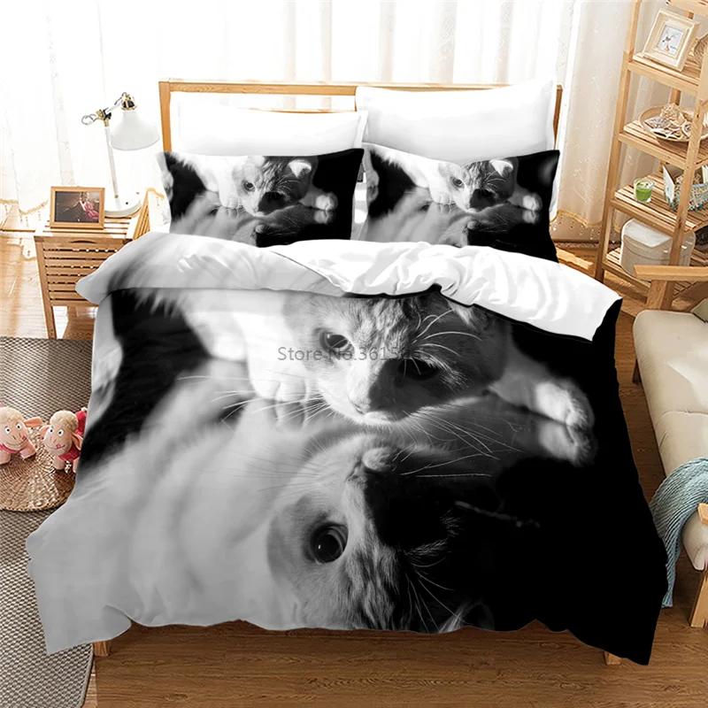 Комплект постельного белья с принтом милого кота, 3D пододеяльник с наволочкой, постельное белье Twin Full Queen King Size для декора спальни, 2/3 шт. 135x200cm