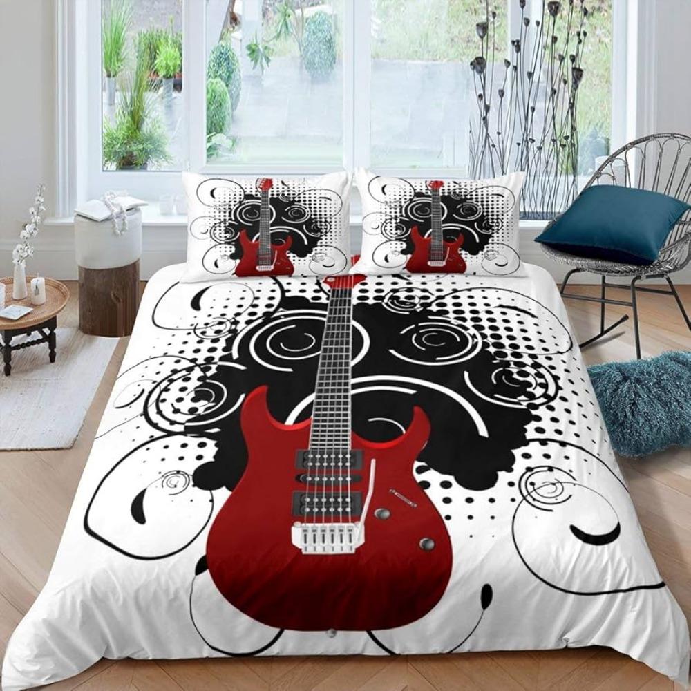 Комплект постельного белья с рисунком гитары, напечатанный на 3D-принтере, пододеяльник, наволочка, украшение для детской и подростковой спальни, ноты, односпальная двуспальная кровать Baby 100x135cm