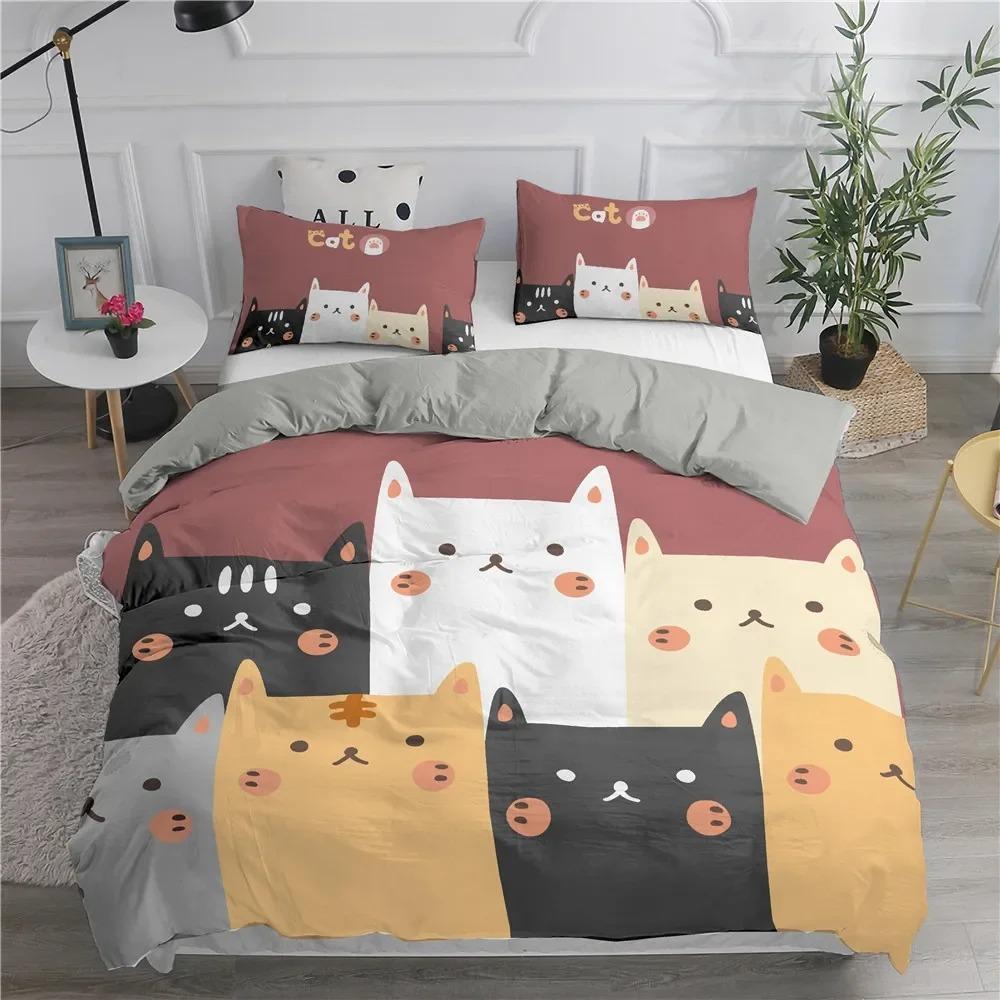 Комплект постельного белья с рисунком кота из мультфильма, наволочка, пододеяльник, котенок, двуспальная кровать, двуспальная кровать, двуспальная кровать, кровать размера «king-size», постельное белье для взрослых и детей, пододеяльник AU Double 180x210c