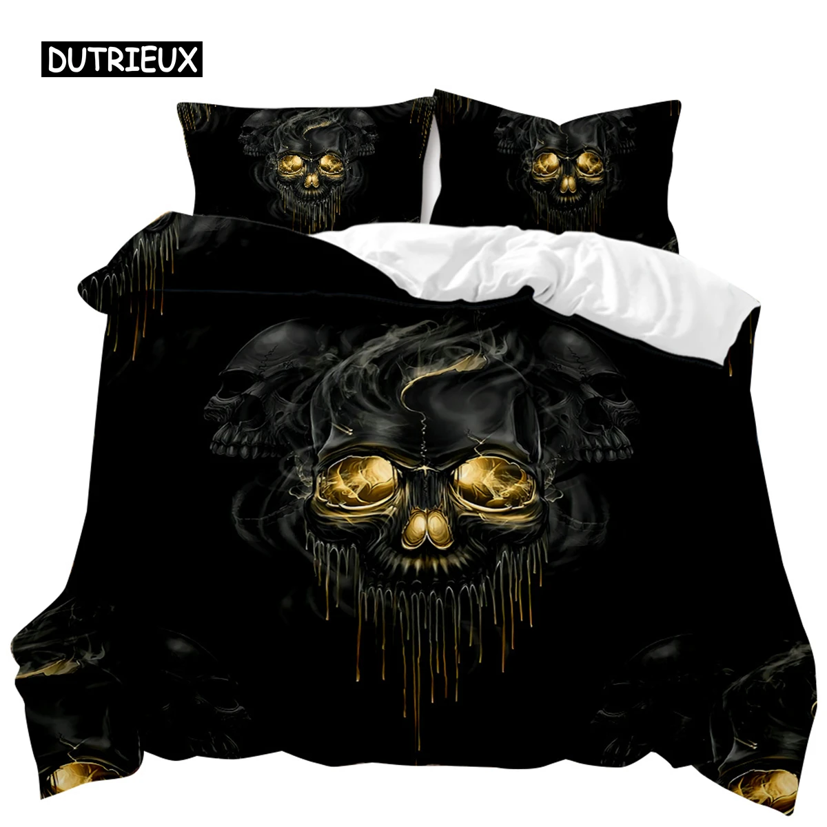 Комплект постельного белья с рисунком черепа, ужасный королевский комплект постельного белья со скелетом, из полиэстера, готический ужас на Хэллоуин