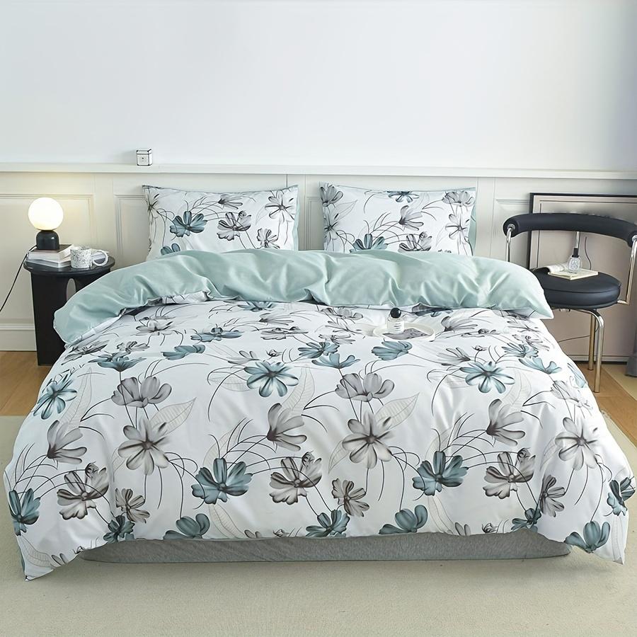 Комплект постельного белья с цветочным принтом, мягкий, удобный, пододеяльник для спальни, гостевой комнаты (1*Пододеяльник + 2*Наволочки) 135X200cm