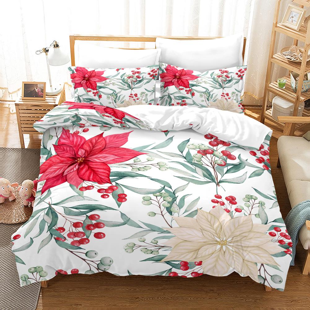 Комплект постельного белья с цифровым принтом Flower - полиэстер - Декор для спальни - 1 покрывало + 2 наволочки (нет подушки) 173x229cm