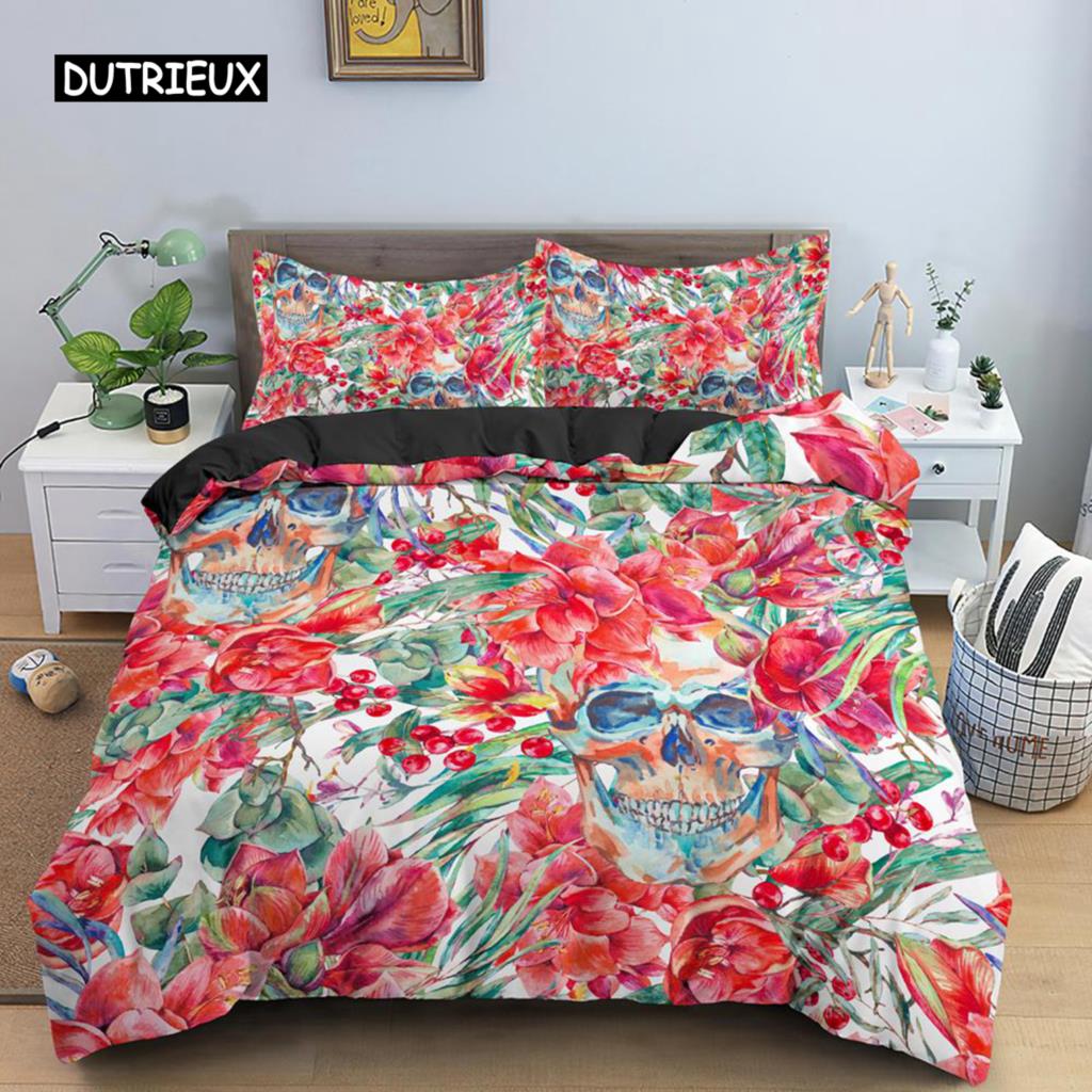 Комплект постельного белья с черепом размера King Queen, готические розы и кости черепа, комплект постельного белья из микрофибры, ужас, скелет, покрывало EU single(135x200cm)