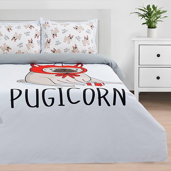Комплект постельного белья 1,5 спальный Этель Pugicorn, Белый, Комплект постельного белья 1,5 спальный Этель Pugicorn