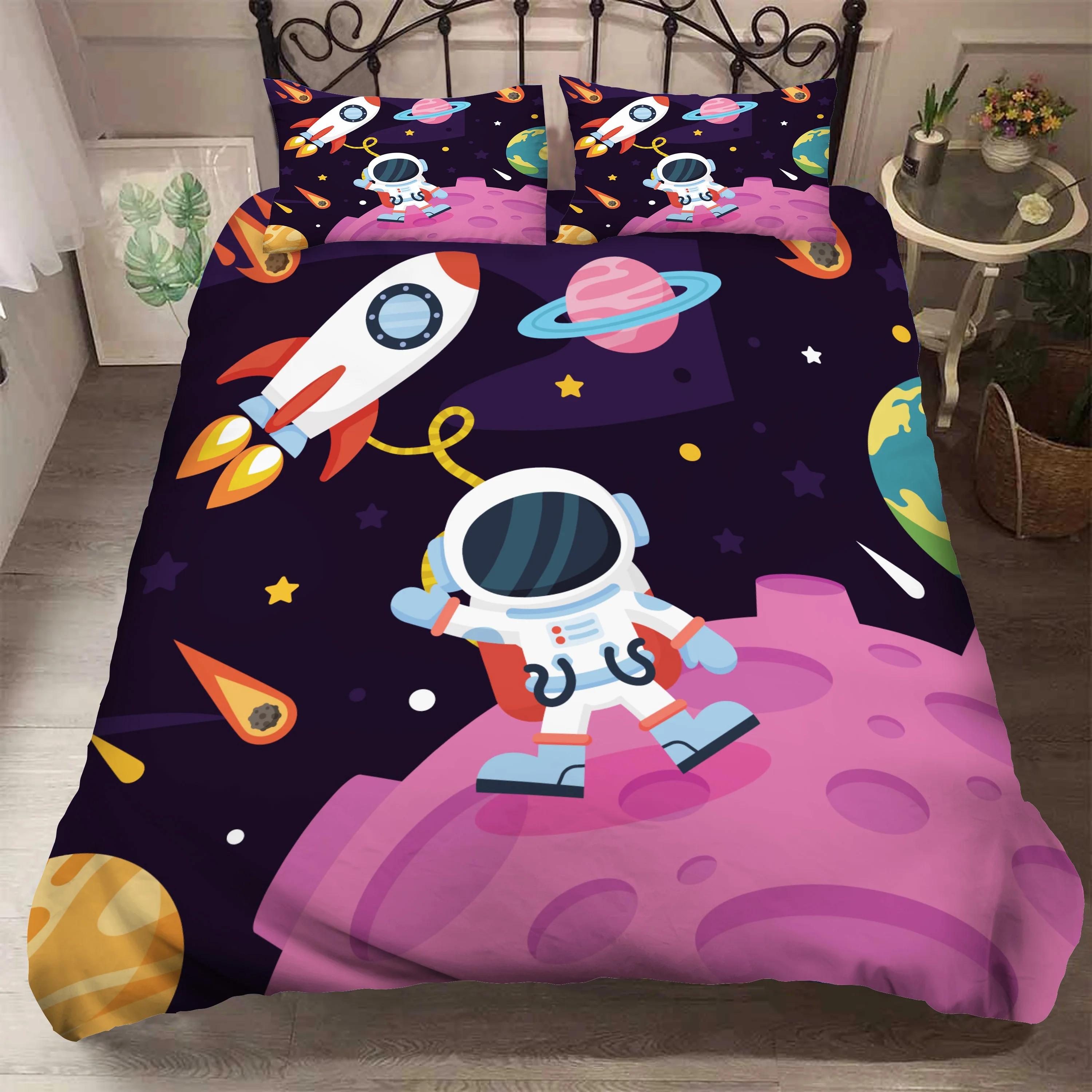 Комплект постельного белья 3D Космос Астронавт Пододеяльник с наволочкой Комплект постельного белья для детей Декор спальни Комплект постельного белья для мальчиков Льняные простыни EU Single 135x200cm
