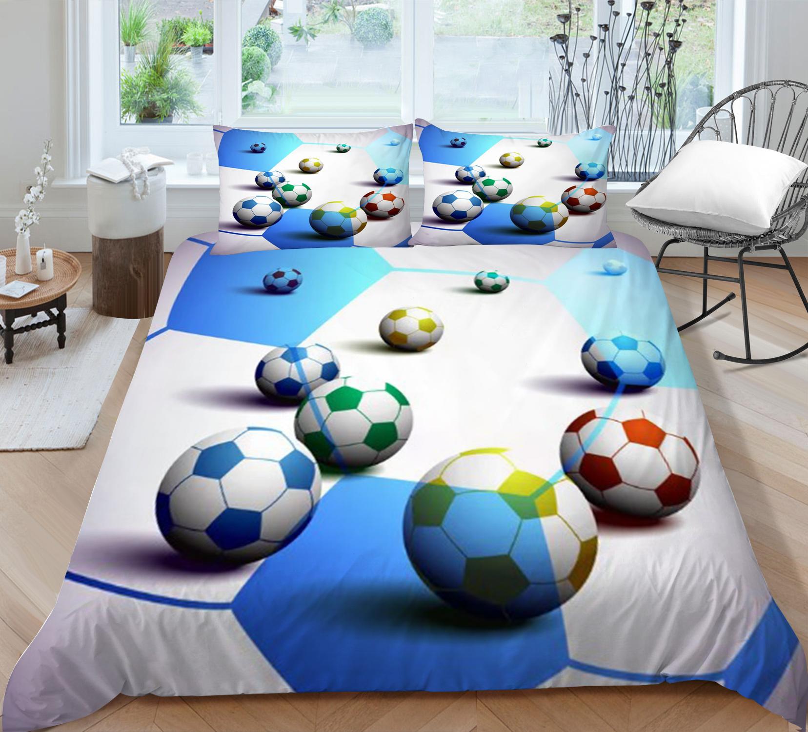 Комплект постельного белья 3D Football Series, спортивный пододеяльник и наволочка, 2/3 шт. EU135 * 200, полноразмерное мягкое украшение для дома, можно стирать в машине UK Single 135x200cm