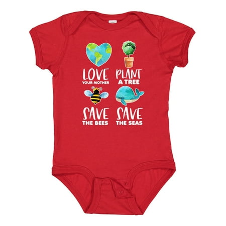 Inktastic Earth Day Plant a Tree Save the Bees Save the Seas Love Your Mother Earth Gift Baby Boy or Baby Girl Bodysuit