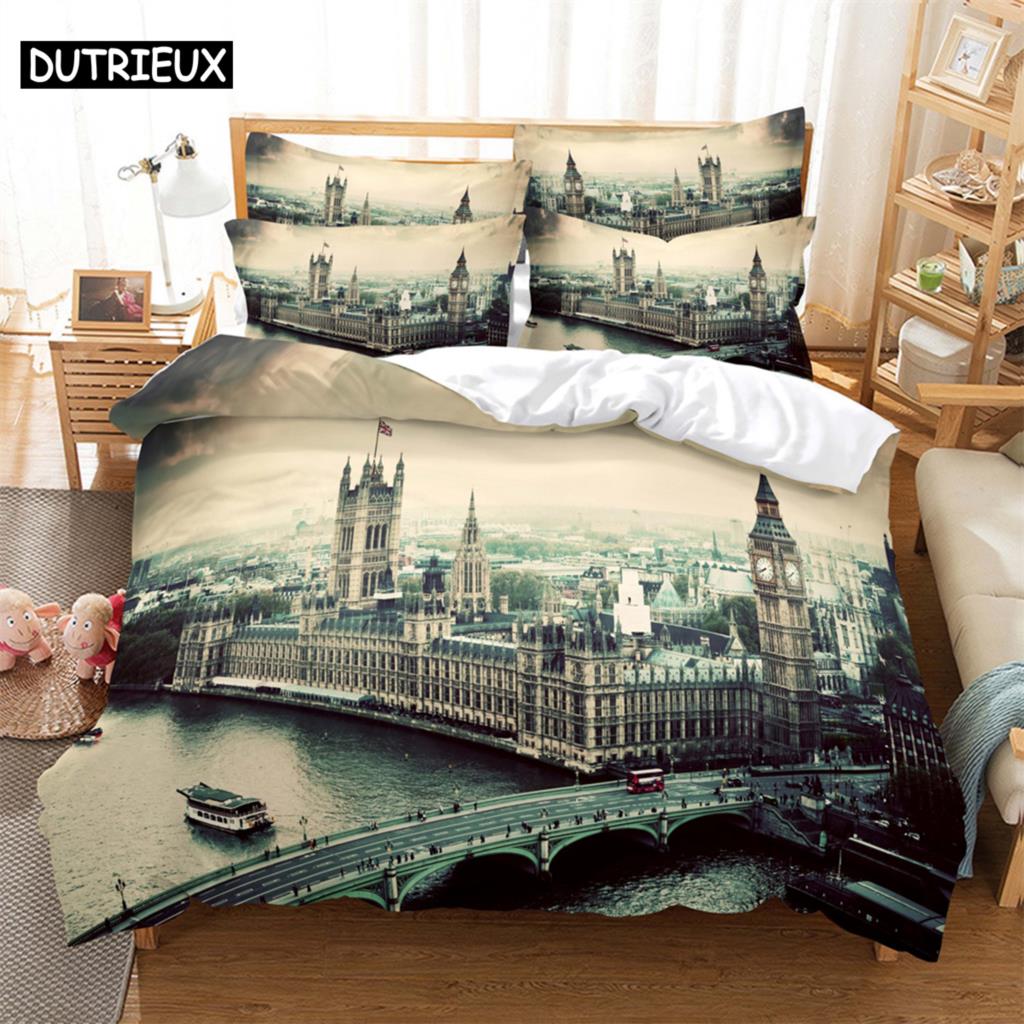 Комплект постельного белья Architecture Fashion 2/3 шт. с 3D-цифровой печатью, набор пододеяльников, 1 пододеяльник + 1/2 наволочки, размеры США/ЕС/Австралия EU single(135x200cm)&set