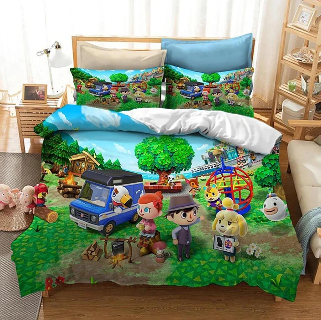 Комплект постельного белья Cartoon Animal Crossing для мальчиков и девочек, двуспальный размер, пододеяльник, наволочка, детская кровать, взрослая мода, домашний текстиль EU Single 135x200cm