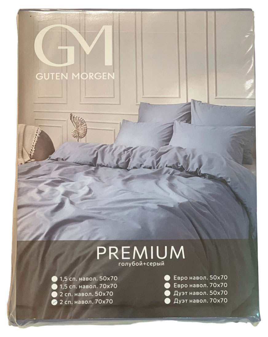 Комплект постельного белья Guten Morgen сатин голубой/серый с наволочкой 70х70, 2 спальный