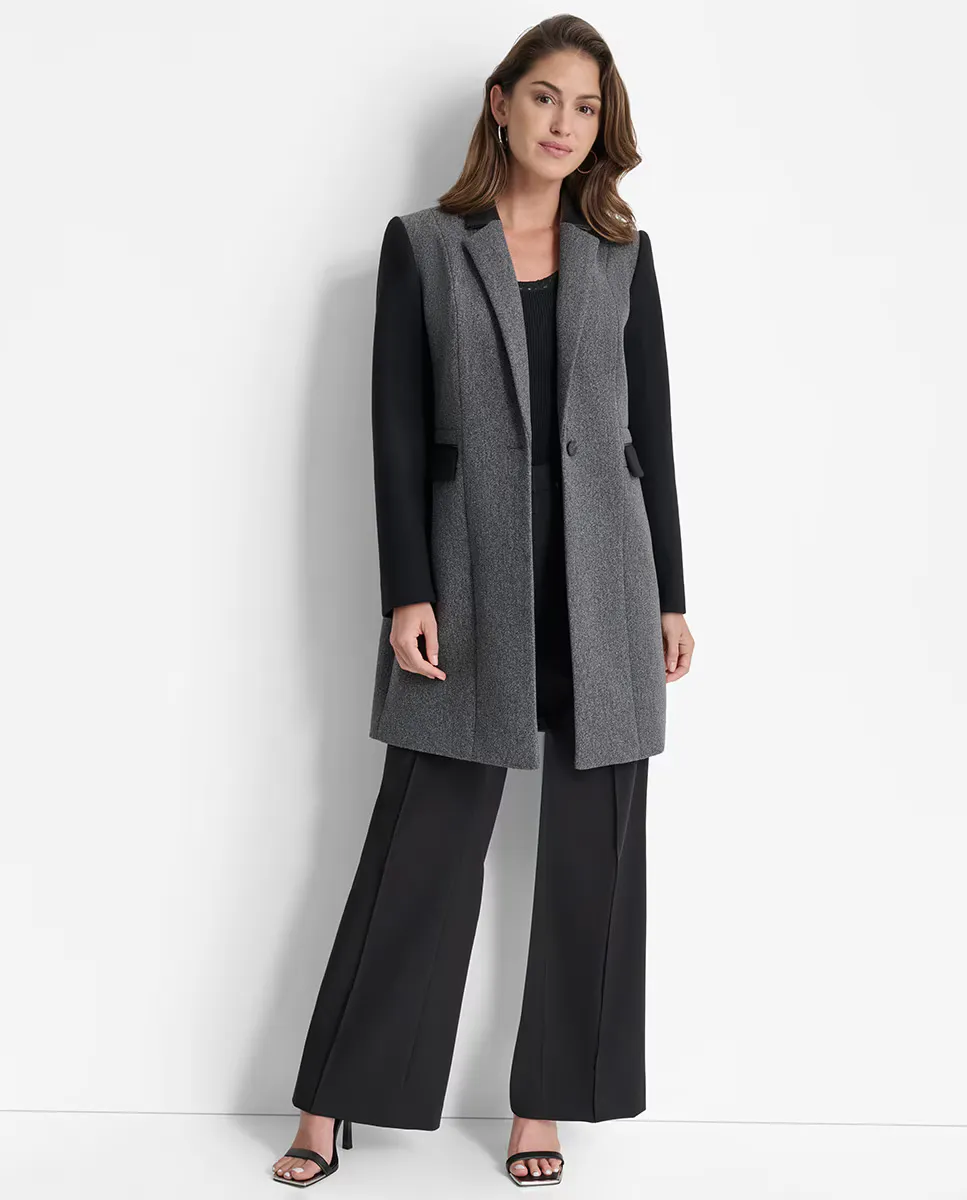 Женский комбинированный блейзер с длинными рукавами с лацканом и пуговицей спереди DKNY, темно-серый