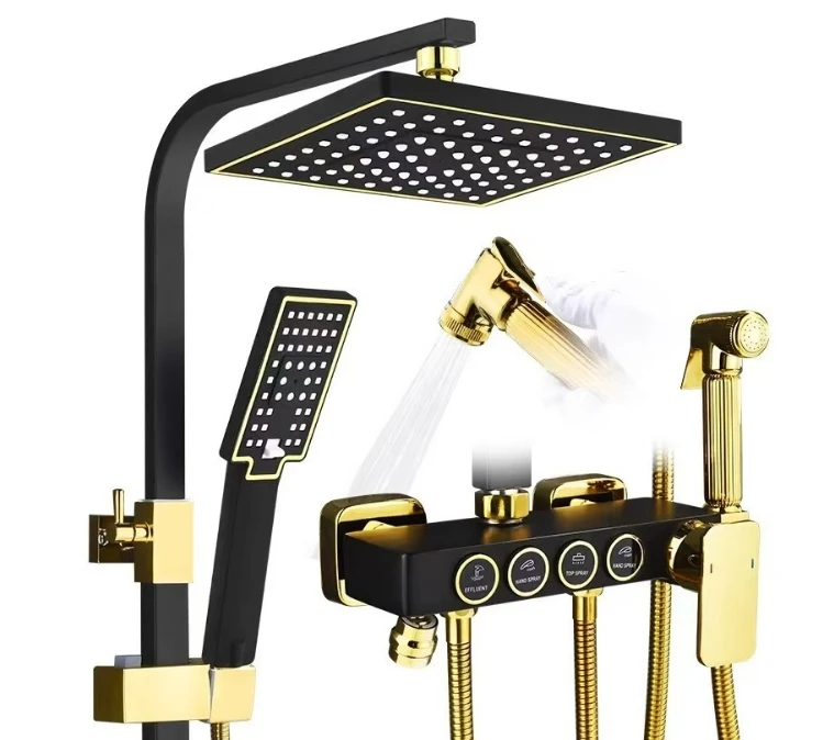 Термостатический черный смеситель для душа с одной ручкой, полированная насадка для душа с дождем, ручной для отелей, в комплект входит керамический сердечник клапана