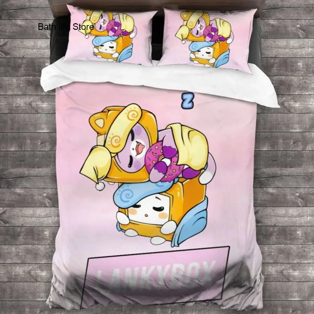 Комплект постельного белья Kawaii Lankybox, мультяшный милый Рождественский подарок, постельное белье, Королевский двойной полный Королевский размер, Детский комплект пододеяльника