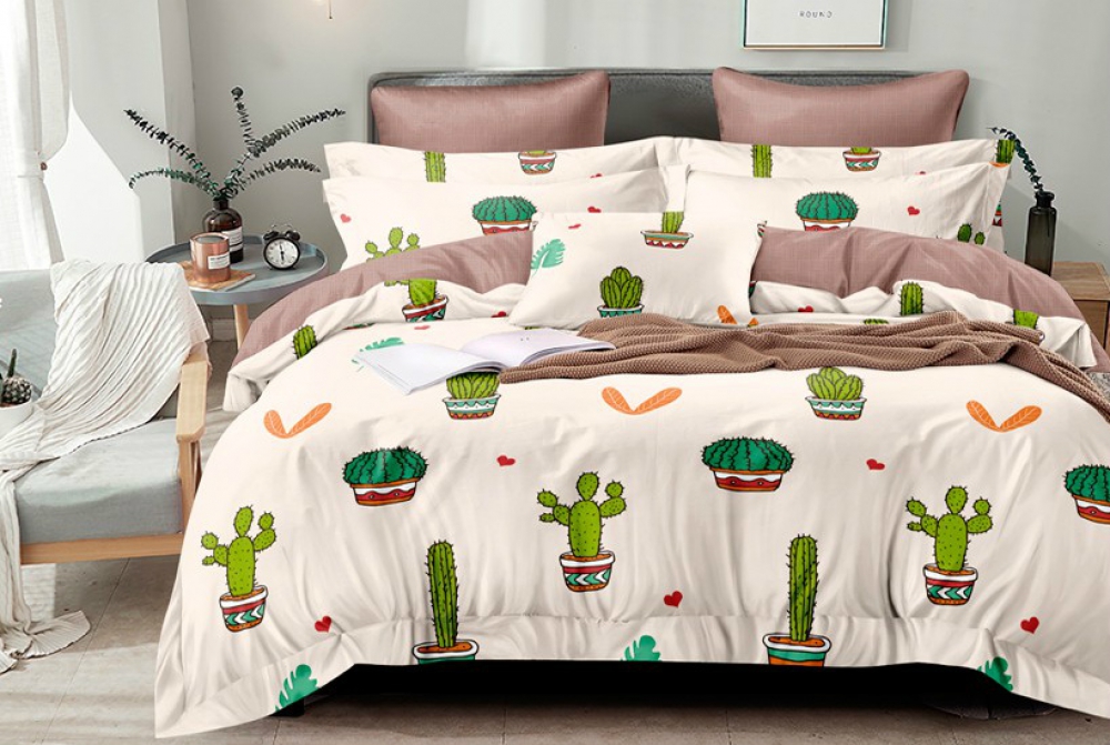 Комплект постельного белья Komfort-tekstil Тропик, сатин (Семейный на резинке)