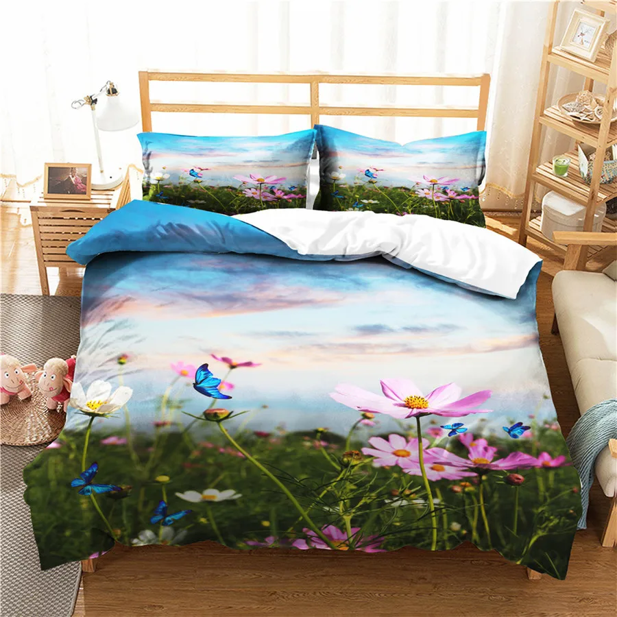 Комплект постельного белья # XH18, комплект с пододеяльником и наволочкой, с 3D рисунком, с цветами и растениями, домашний текстиль, для взрослы...