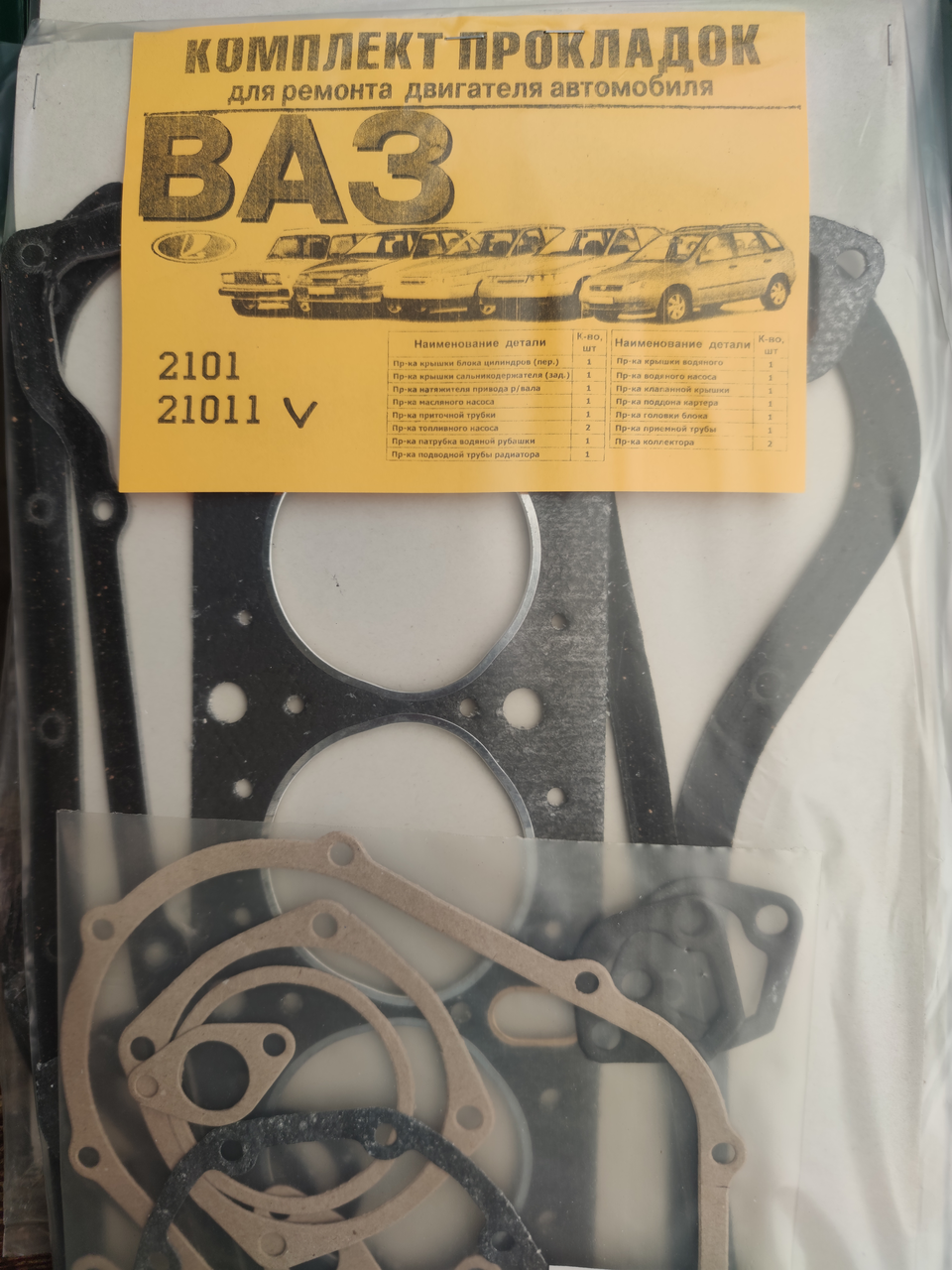 Комплект прокладок для ремонту двигуна ВАЗ 21011