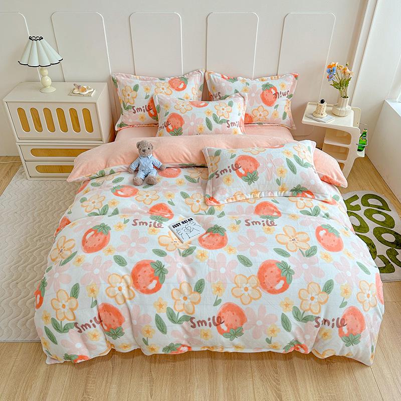Комплект простыней из молочного бархата, четыре части, утолщенная зимняя фланелевая простыня, пододеяльник, двухсторонние бархатные простыни, одеяла, постельное белье Flat Bed Sheet&1.5m bed