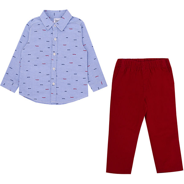 Комплект для повседневной носки. Рубашка с длинными рукавами и отложным воротником. Украшена надписями. Брюки прямого кроя обеспечивают комфортную посадку. Изделия выполнены из натурального и дышащего материала.