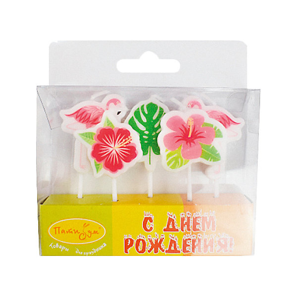 Яркие свечки могут помочь украсить праздничный торт. К каждой из них прикреплено по одному декоративному элементу. Изделия выполнены из качественного и безопасного для здоровья материала.