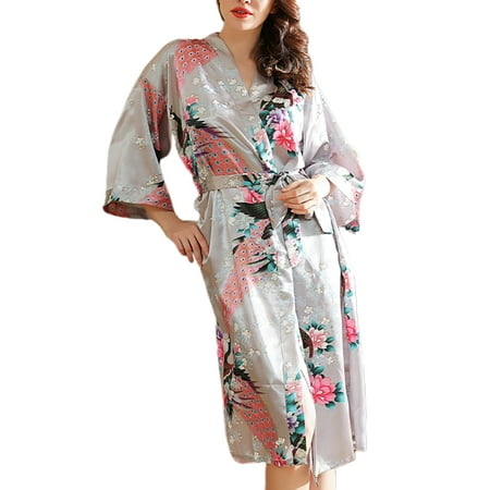 Lumento Ladies Lightweight Lounge Robe Loose 3/4 Sleeve Bathrobe Nightwear Kimono Pajamas Grey XL