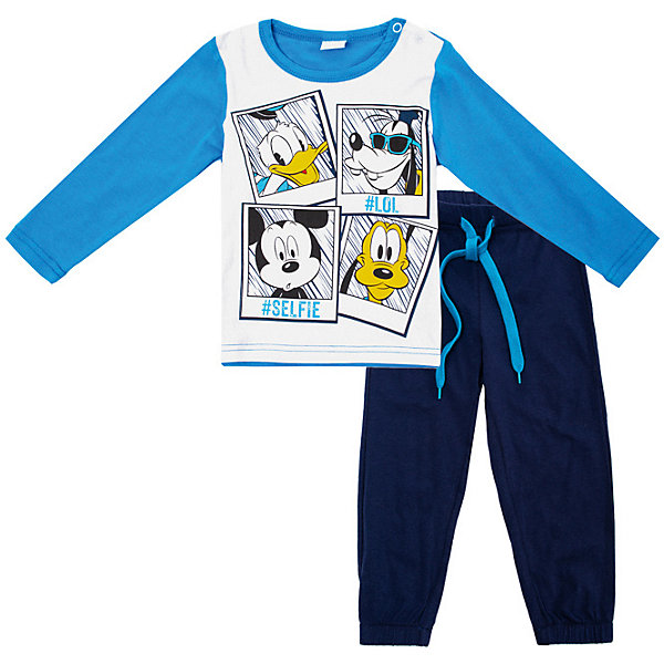Трикотажный комплект, который понравится ребенку: футболка с длинным рукавом, веселым водным принтом с элементами rubber, удобной застежкой на плече, обеспечивающей удобство при снимании и надевании, и спортивных брюк удобного кроя. С помощью шнурка можно регулировать объем талии, что удобно, независимо от комплекции мальчика. Мягкие резинки на брюках не позволяют перекручиваться штанам и при этом не сдавливают кожу.