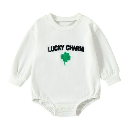 Boys Girls Long Sleeve Irish Festival Embroidery Letter Romper Bodysuit Fall Clothes Newborn Boy Clothes 9-12 Month Girl Clothes My First Halloween Baby Outfit