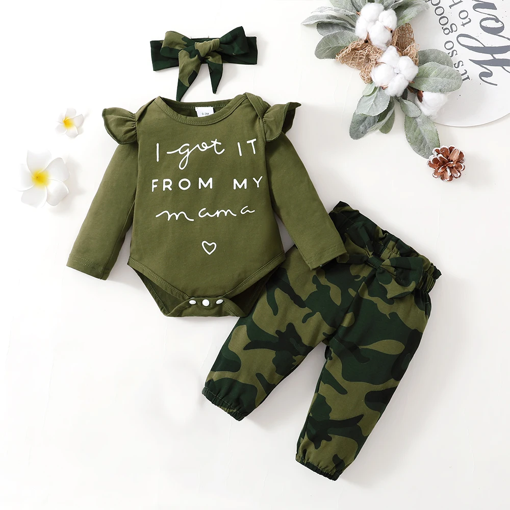 Комплект хлопковой одежды для маленьких девочек 3 шт., Топ с длинным рукавом и штаны с цветочным принтом, повязка на голову, однотонная Одежда для новорожденных 0-24 мес.