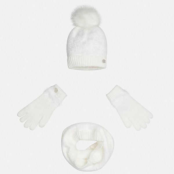 Комплект: шапка, шарф и перчатки для девочки Mayoral, Белый