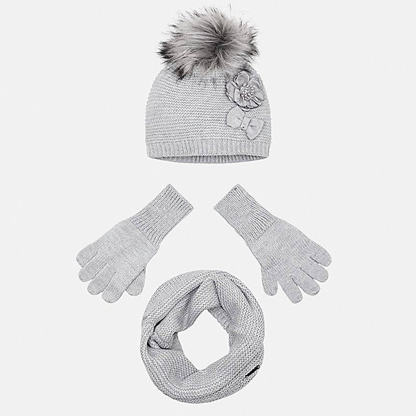 Комплект: шапка, шарф и перчатки Mayoral, Серебряный, Комплект: шапка, шарф и перчатки Mayoral