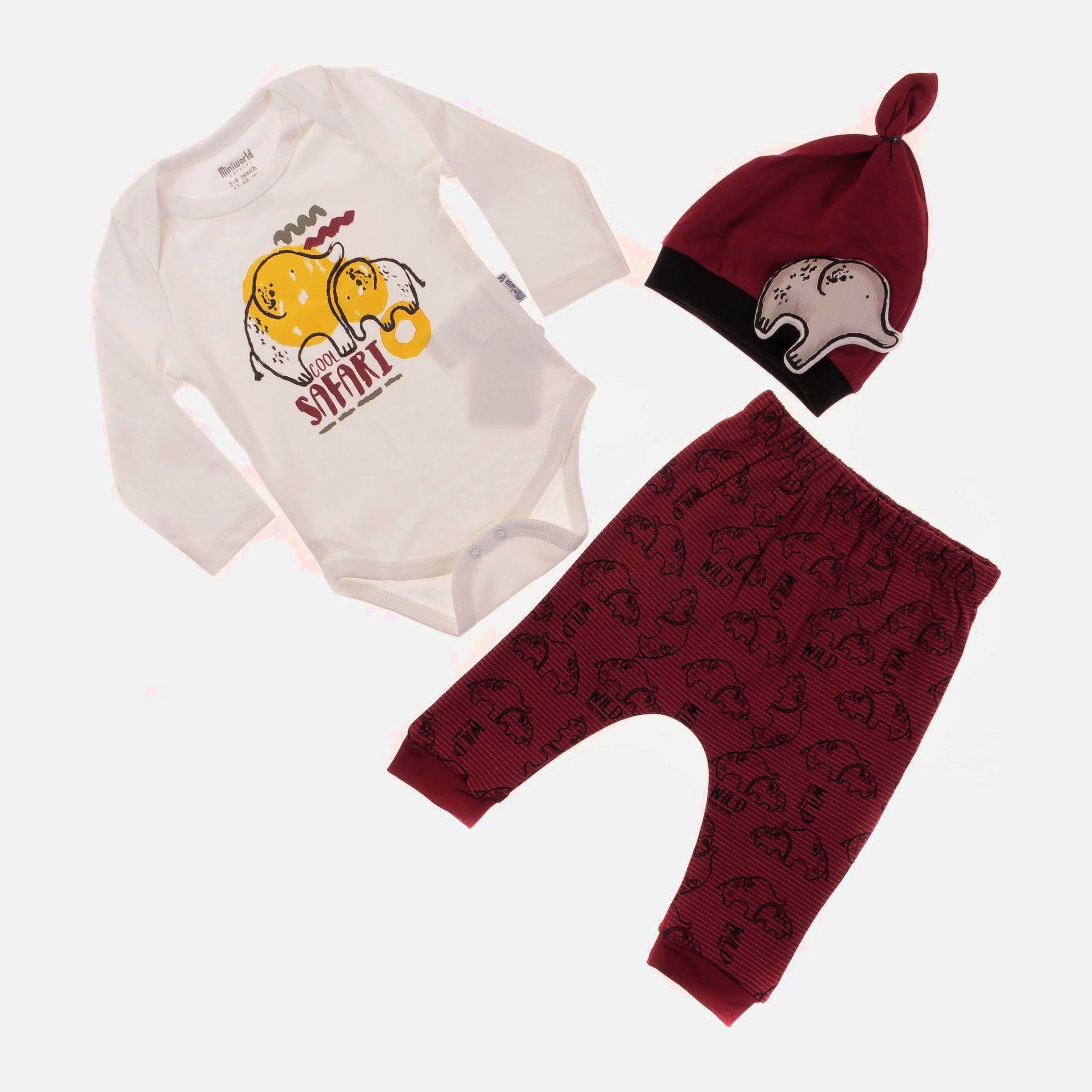 Комплект (шапочка + боди + штанишки) MiniWorld 15294 74 см Кремовый/Бордовый