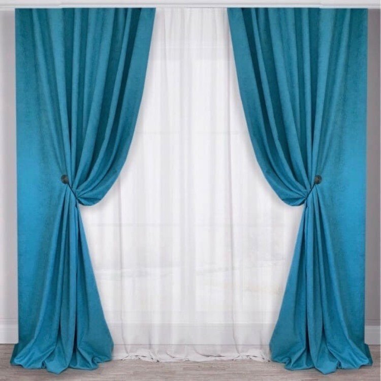 200 х 250 см, полиэстер, для жилой комнаты, бирюзовый, крепление тесьма, пропускают свет