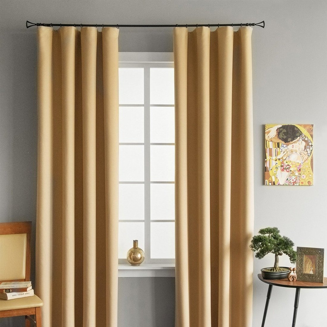 145 х 270 см, полиэстер, для жилой комнаты, песочный, крепление тесьма, блэкаут