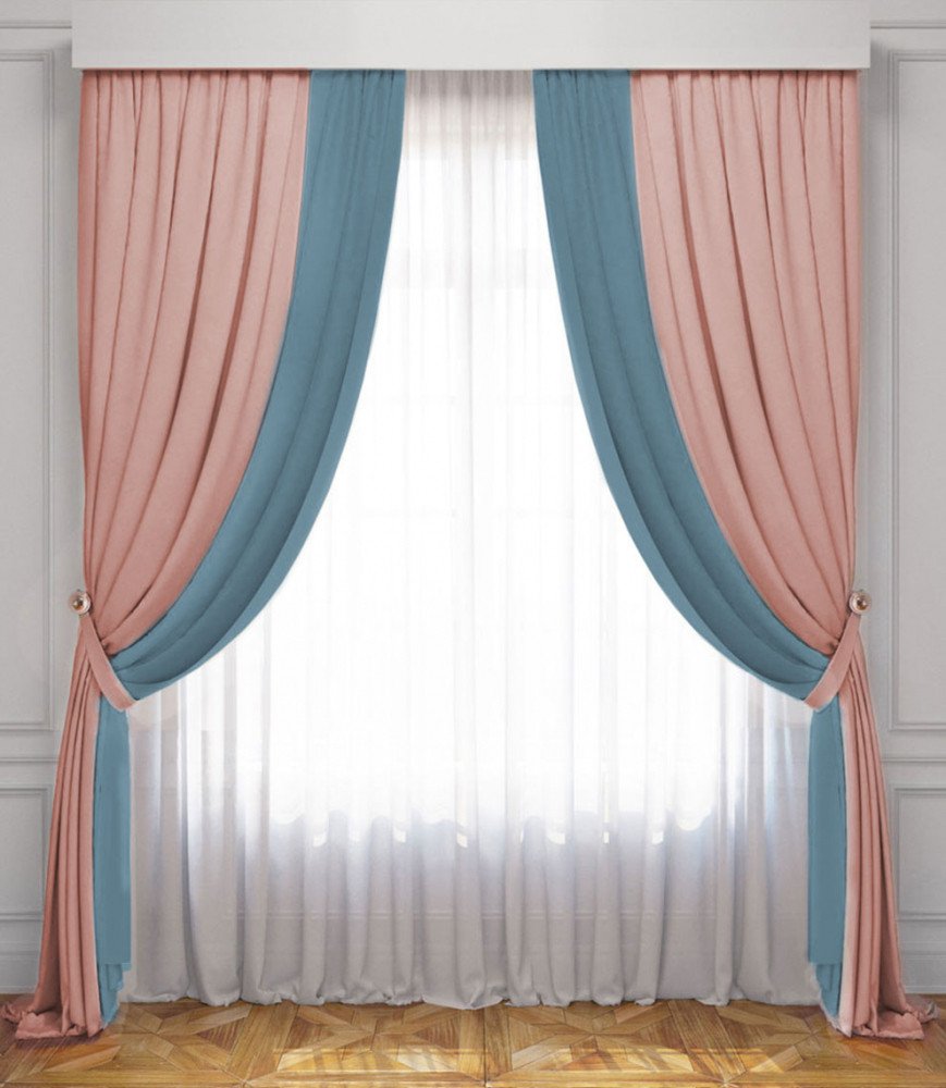 Комплект штор Pasionaria Латур 340x240 с подхватами (светло-розовый/голубой)
