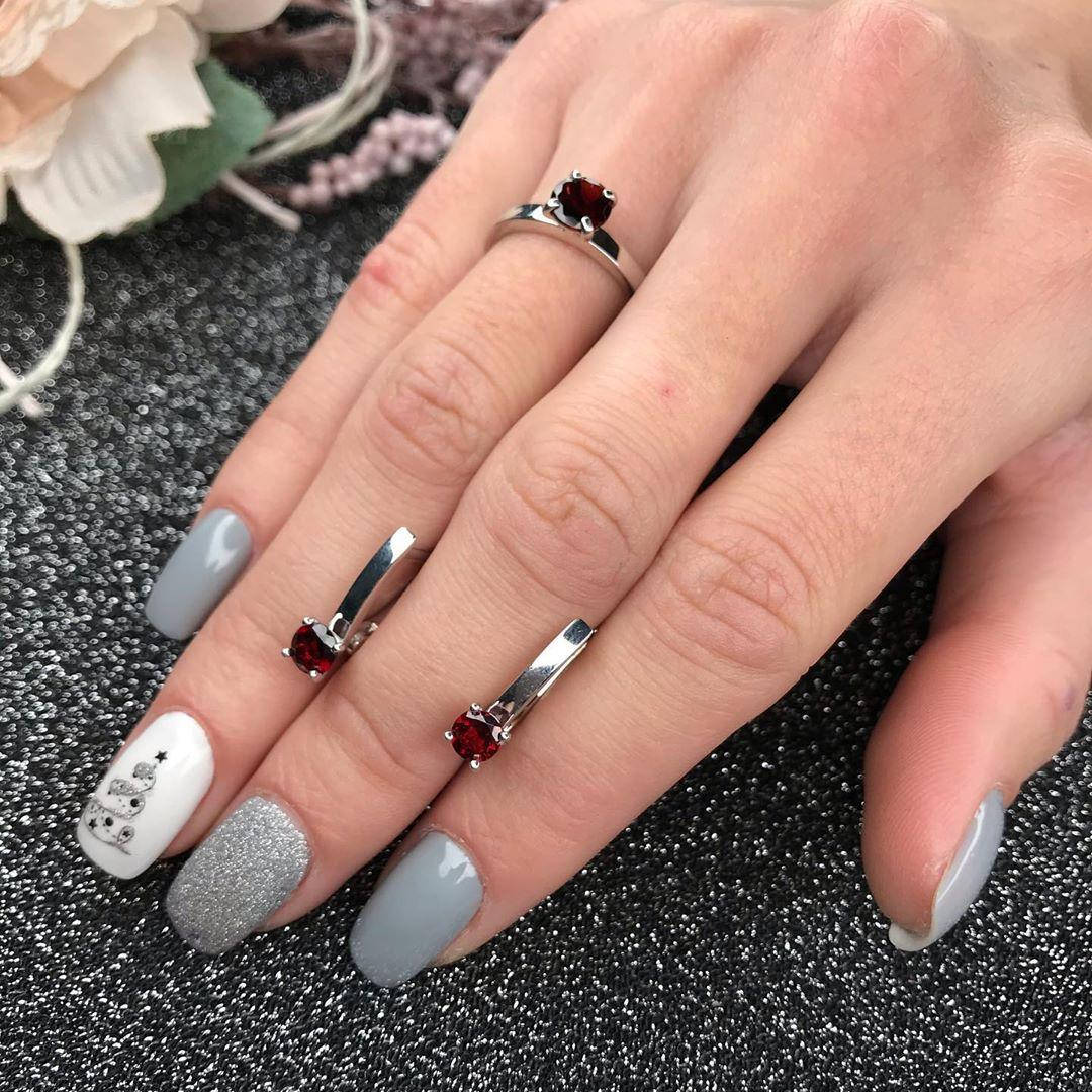 Комплект ювелирный из серебра 925 пробы ,вставка :Гранат.ct 1.94