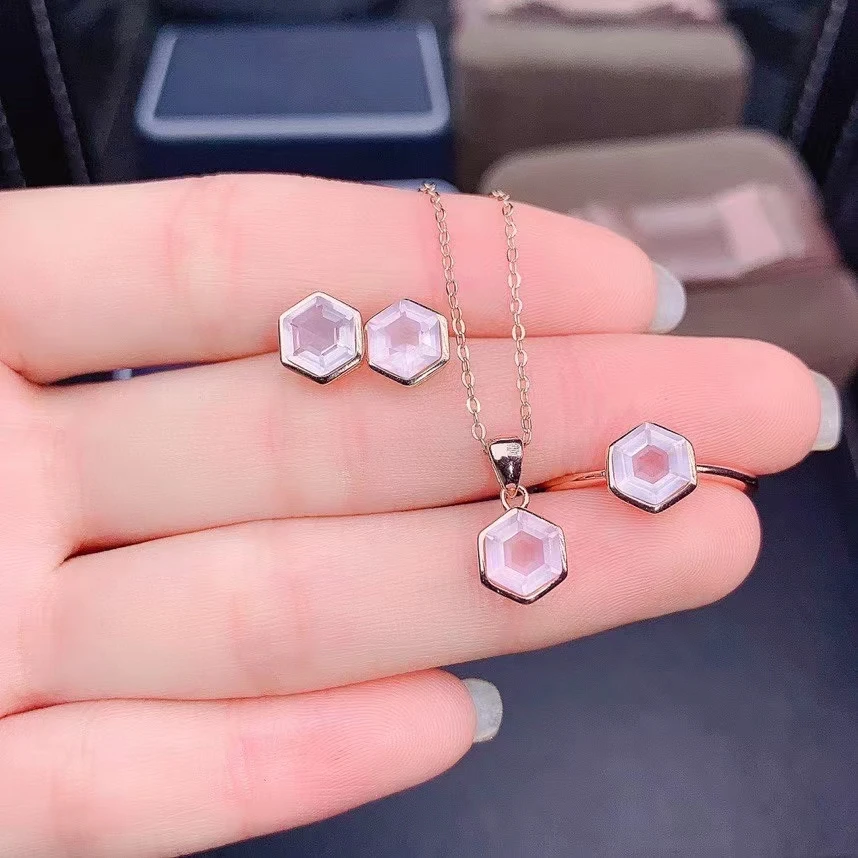 Комплект ювелирных изделий из серебра 925 пробы с натуральным драгоценным камнем