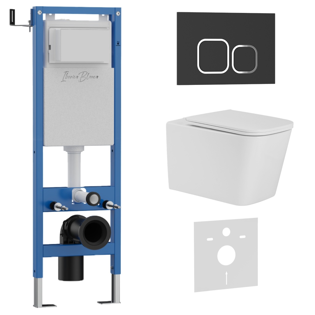Комплект 3 в 1 Iberica Blanca инсталляция 40 см, унитаз TOLEDO ALTO IB.TLA.231.1B1, клавиша смыва черный матовый IB.B083.002.000, Глянцевый белый, IB.001M.TLA.231.832