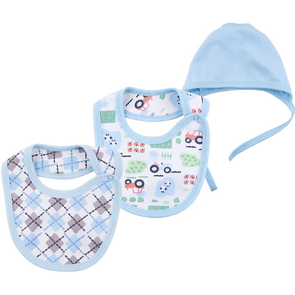 Комплект Bossa Nova: чепчик и 2 нагрудника, Синий/белый, Комплект Bossa Nova: чепчик и 2 нагрудника