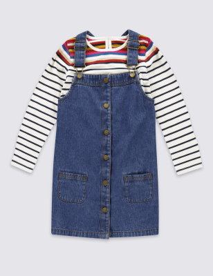 Комплект Pinny из чистого хлопка для девочки 1-7 лет: джинсовый сарафан и топ