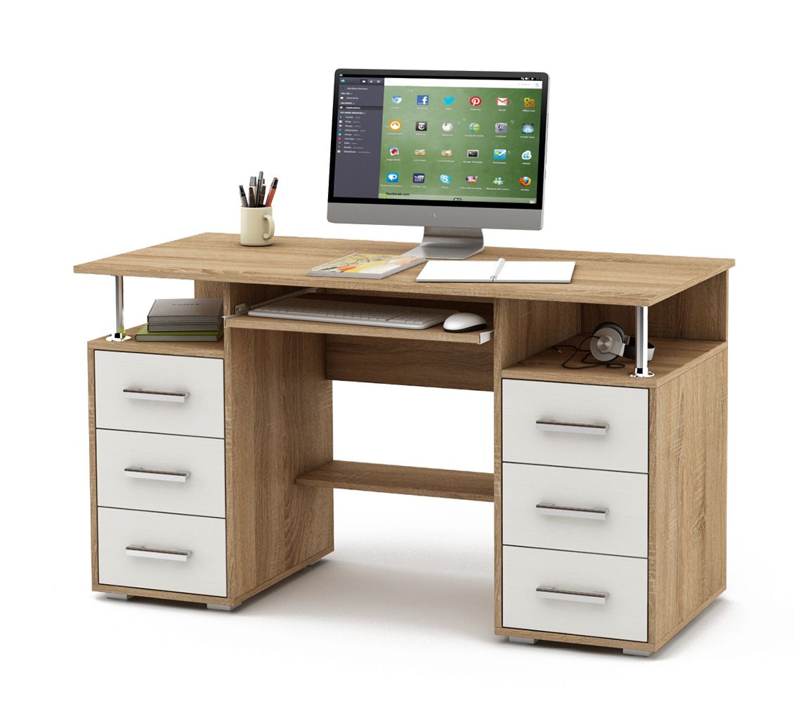 Компьютерный стол Амбер-8К-Дуб-сонома/Белый, Компьютерный стол Амбер-8К