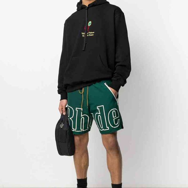 rhude shorts men's for home women letter 2021 summer casual oversize breechcloth hip hop gym hombre, White;black