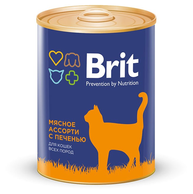 Консервированный корм для кошек Brit мясное ассорти с печенью, 340 г