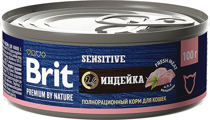 Консервированный корм для кошек Brit с чувствительным пищеварением с мясом индейки 100 г