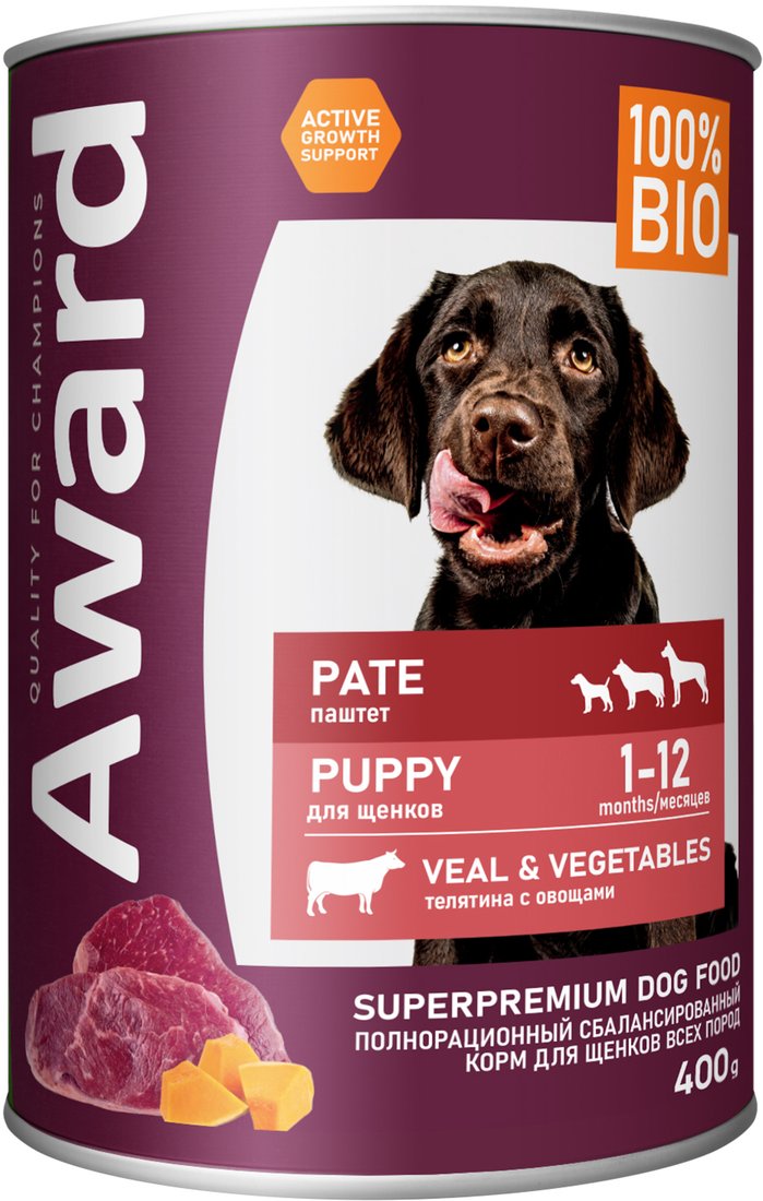 Консервированный корм для собак Award Puppy Small Паштет из телятины с овощами 2540355 400 г