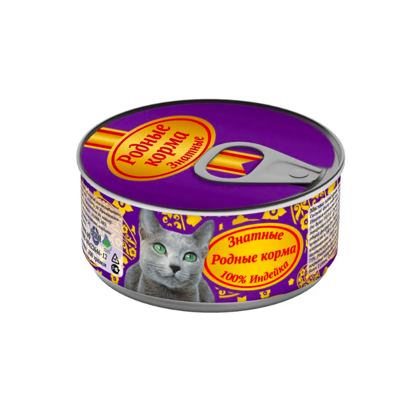 Консервы для кошек Родные корма Знатные 100% с индейкой 2 шт по 100 г, Знатные