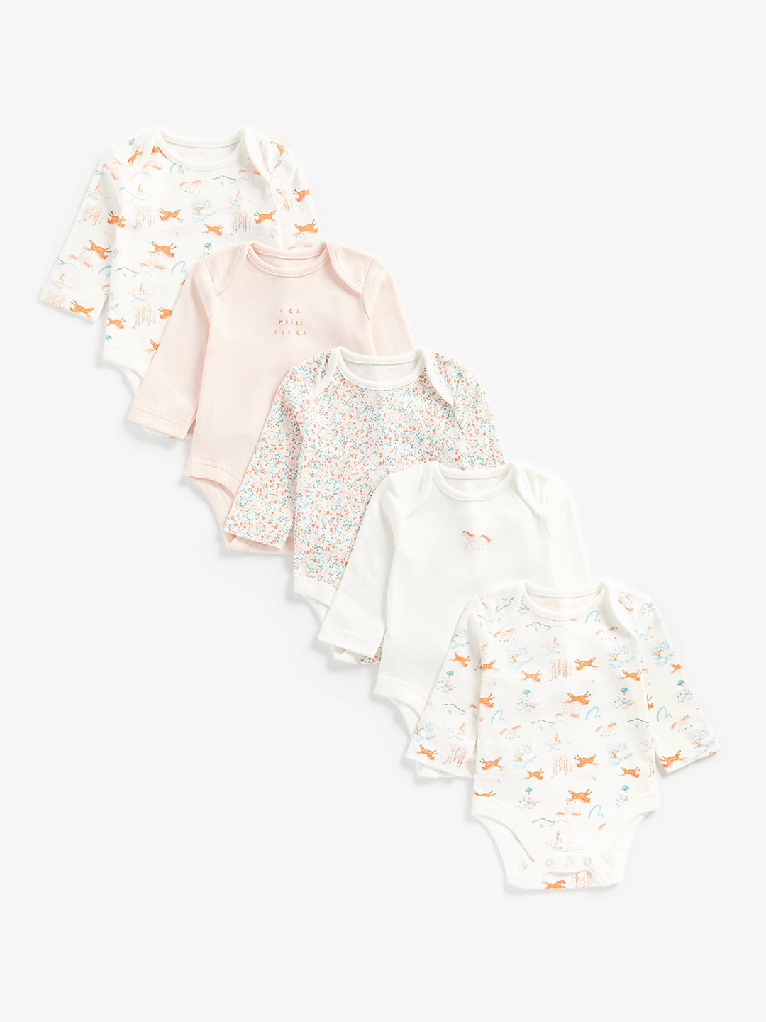 mothercare Infant Girls Multicoloured Printed Pack Of 5 Cotton Bodysuits, Multi